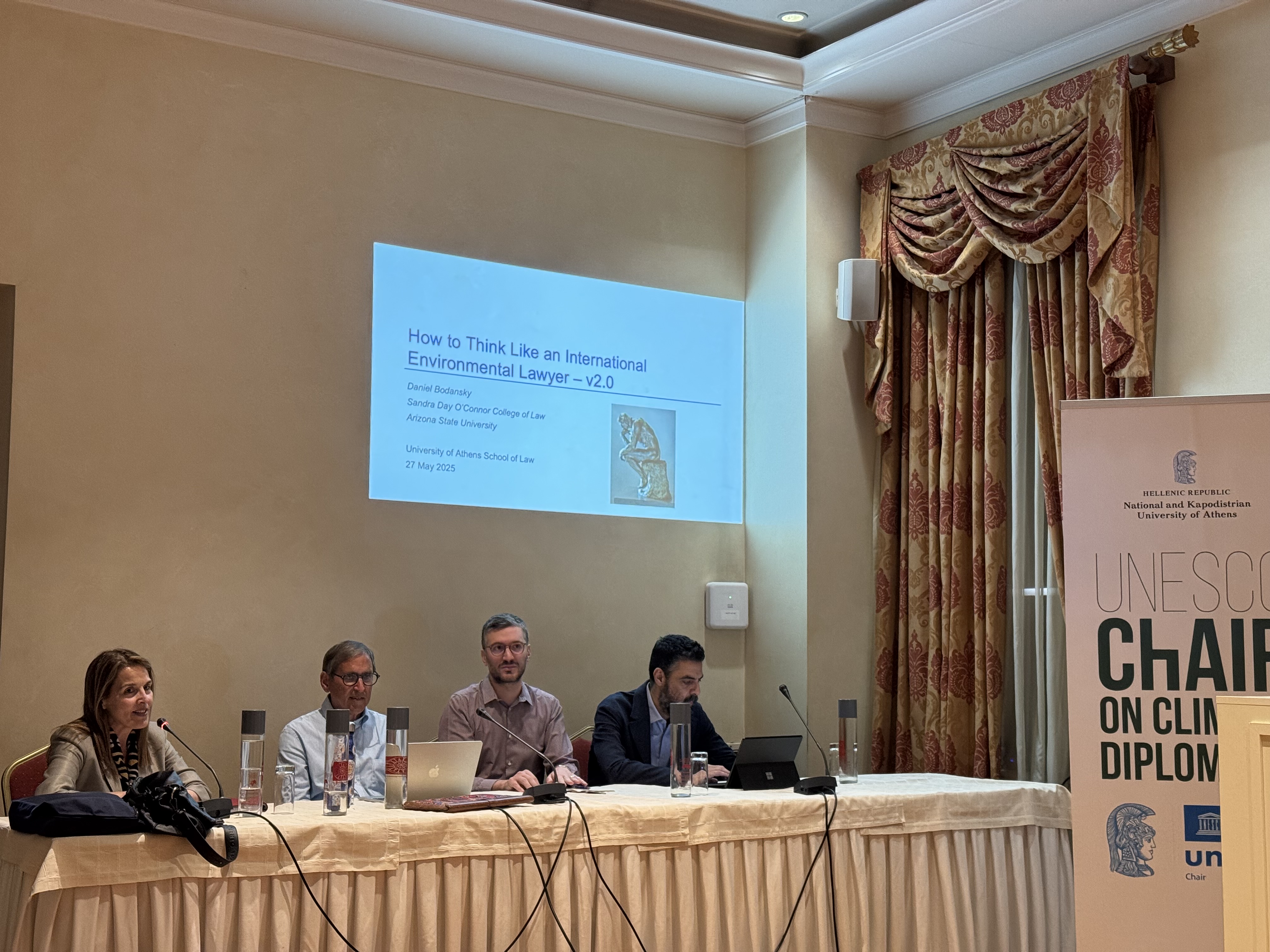 - Book presentation: Daniel Bodansky and Harro van Asselt (2024) The Art and Craft of International Environmental Law, 2nd ed. (Oxford University Press). Daniel Bodansky, in discussion with Ilias Plakokefalos and George Dikaios, moderated by Emmanuella Doussis, Athens, 27 May 2025 (pictures: 1, 2).